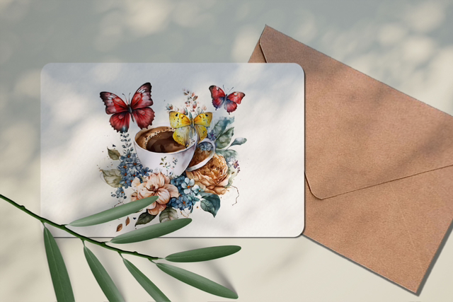 Mooie watercolor / aquarel kaart met Kraft envelop
