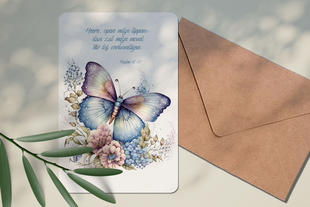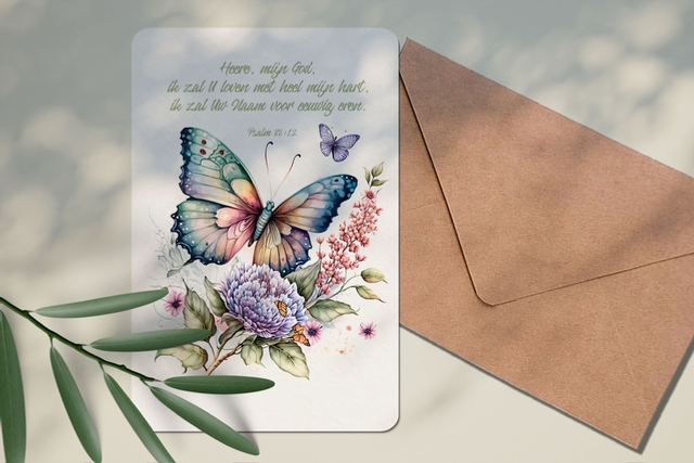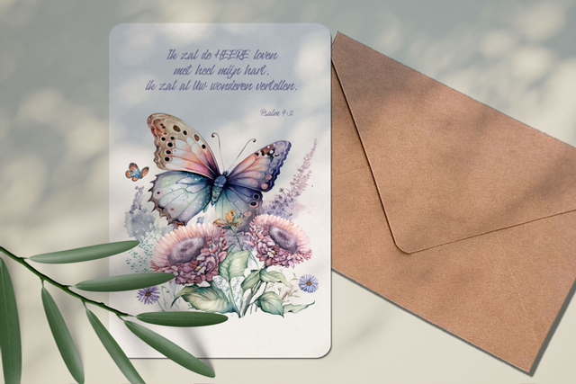 Mooie watercolor / aquarel kaart met Kraft envelop