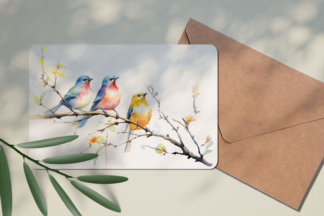 Mooie watercolor / aquarel kaart met Kraft envelop